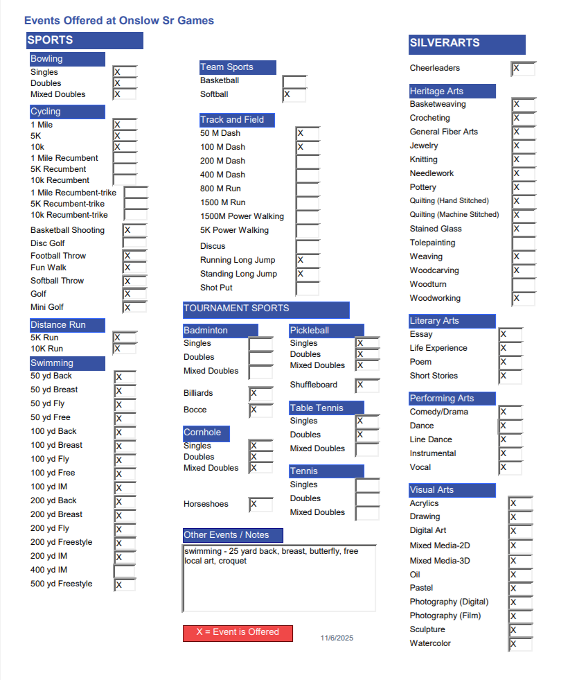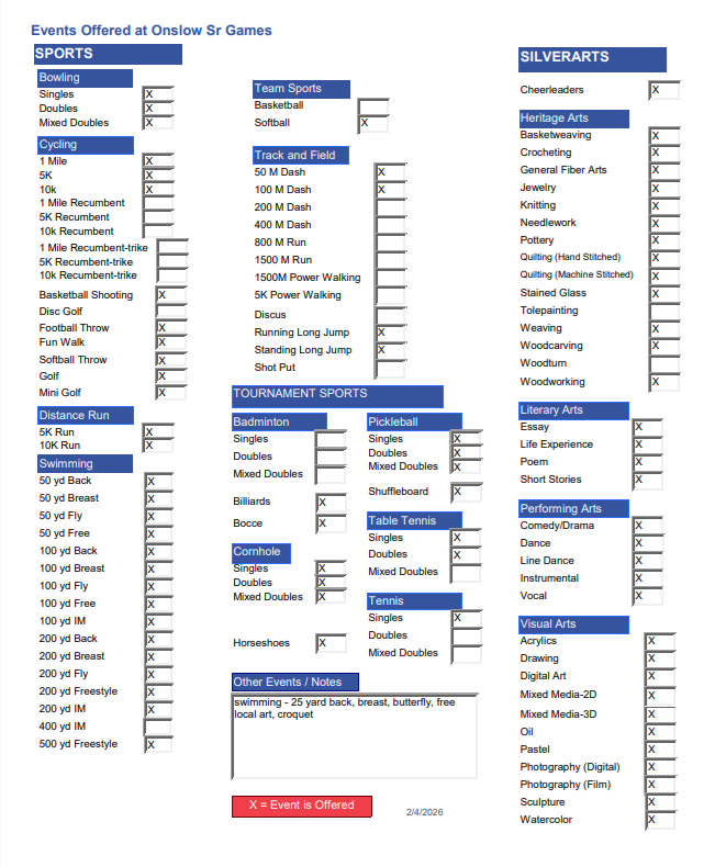 Facebook: Onslow County Senior Games